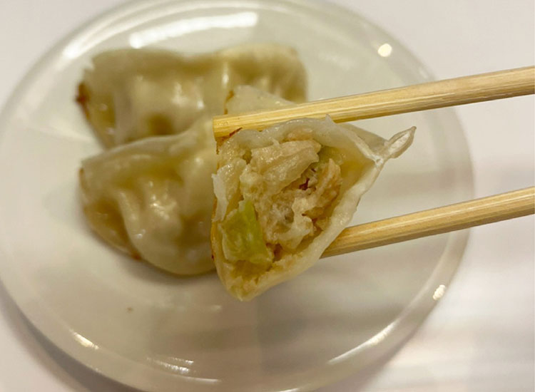 7種の中で唯一の米粉餃子。餃子でグルテンフリーは嬉しいですね。米粉の餃子は、底はカリカリ、周りはもっちりの感覚を味わうために、底をしっかり焼くのがおすすめだそう。他の餃子と異なる焼き方のポイントとして、水がなくなるまでフタをしたまま焼くといいそうです。