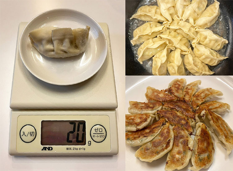 他の種類の餃子の焼き方が同梱チラシに記載あり、1つあたり26g