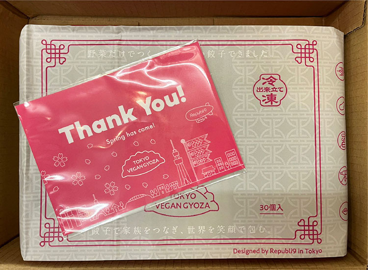 餃子が包まれているパッケージもビビッドピンクとライトグレーのカラーリングで洗練されたデザインです!お友達にも紹介したくなります。